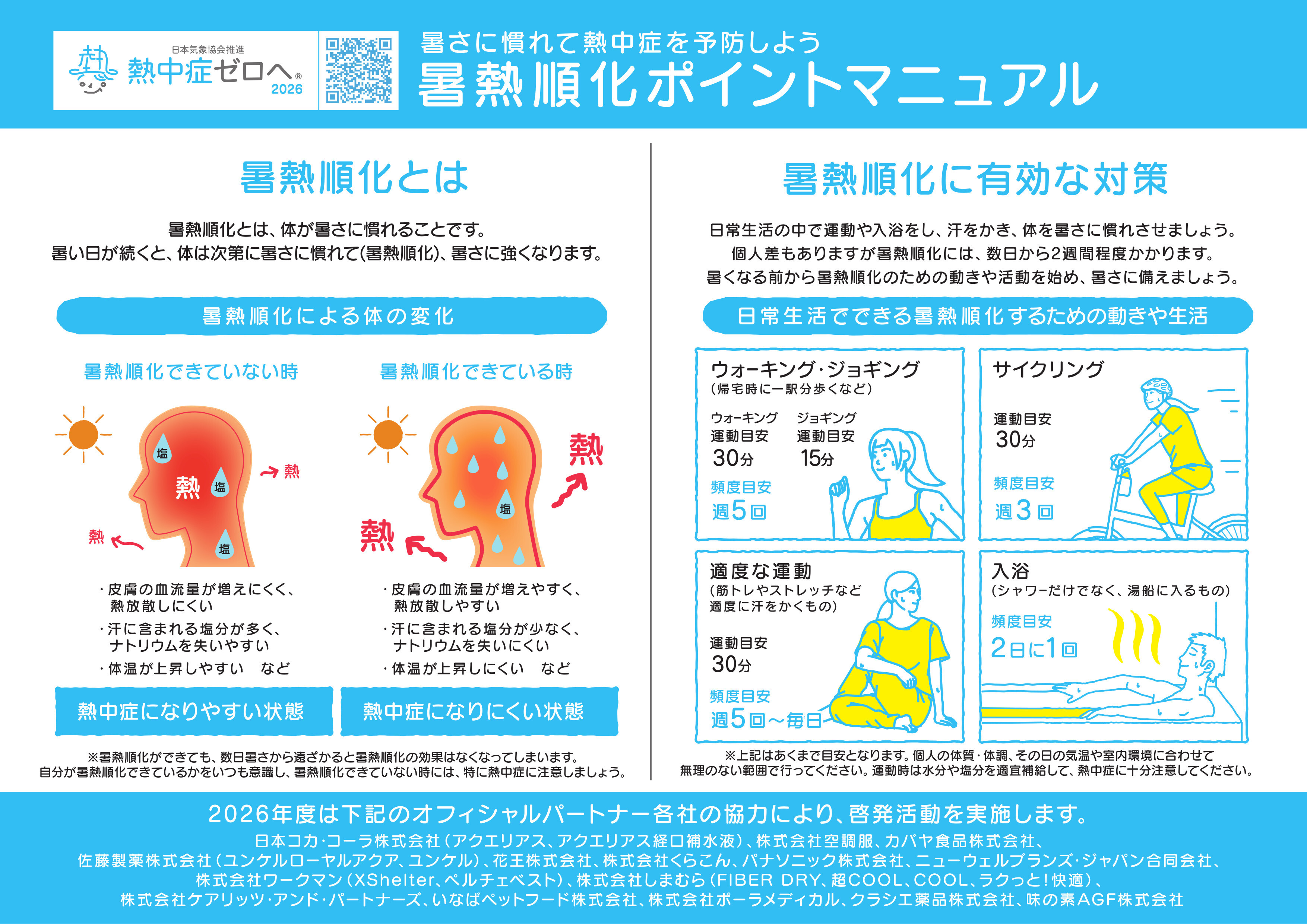 ※汗をかくと、体から熱を放散できるため、熱中症予防に効果があります。
