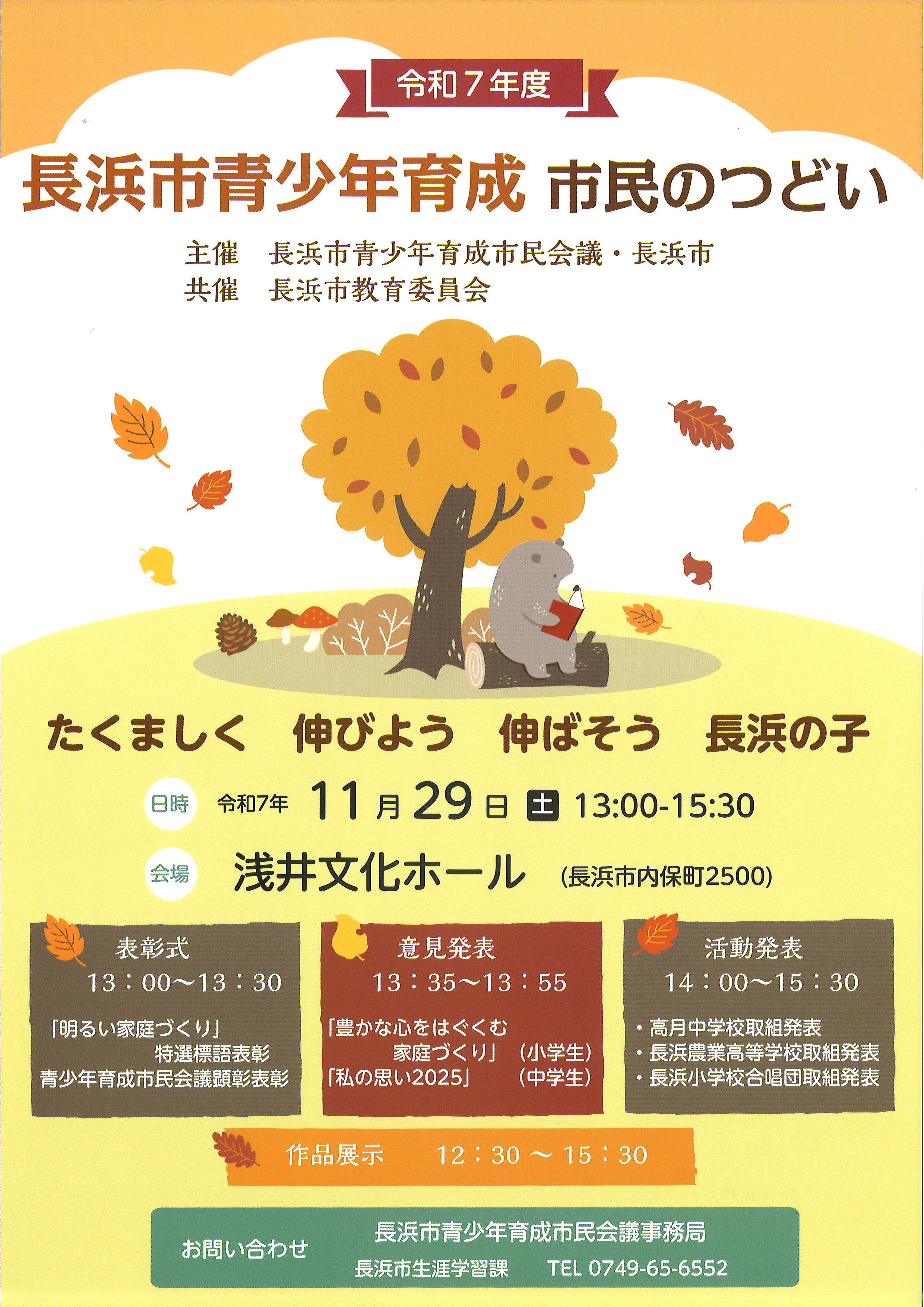 次代を担う青少年が夢と希望を持ち、健全に成長できるよう、市民ぐるみで考え、よりよい社会を築くため、下記のとおり「市民のつどい」を開催します。