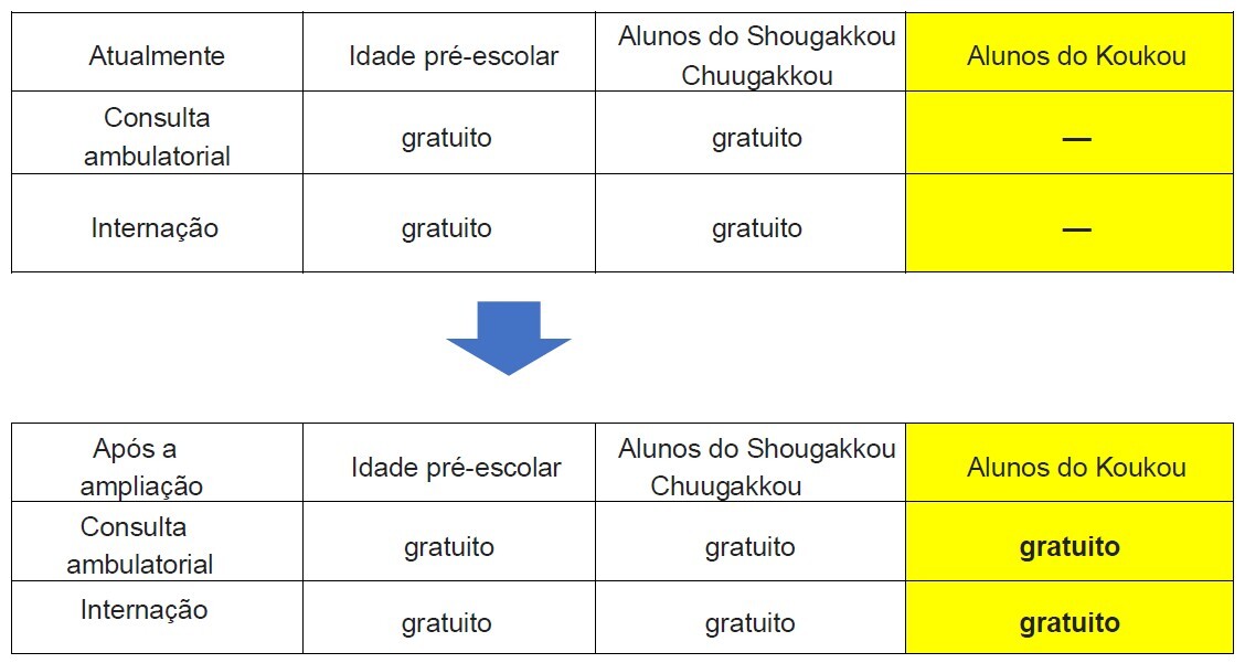 *A substituição do Cartão do Subsídio da Despesa Médica Infantil (faixa etária de alunos do Shougakkou, Chuugakkou) pelo Cartão do Subsídio da Despesa Médica Infantil (faixa etária de alunos do Koukou) será realizada automaticamente com a emissão do cartão no mês de março (trâmites desnecessários).