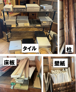 このお店は、昔ながらの土壁の民家を利用しており、ランチも楽しめる素敵なカフェの隣で、建築現場の余剰資材を販売しています。