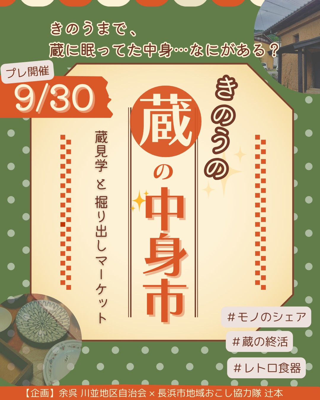 【辻本隊員】余呉川並自治会とのコラボ企画! 『蔵でお宝発掘』『きのうの蔵の中身市』をプレ開催しました(10月7日報告)