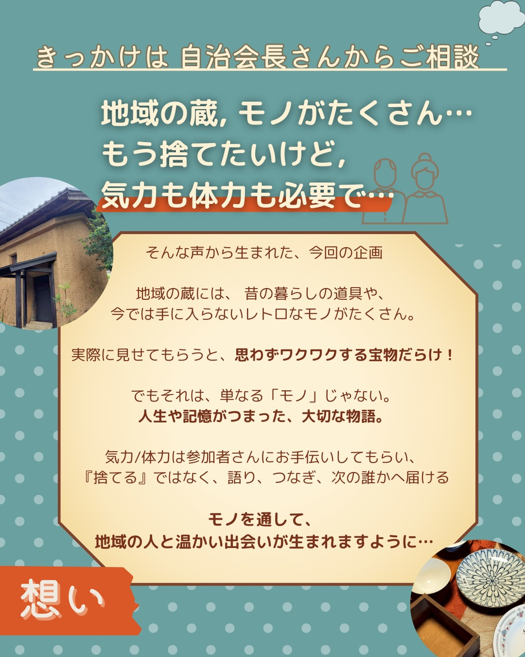 今回の取り組みをきっかけに、“蔵の終活サポート支援”や”モノのシェア”を通じて人と人がつながる瞬間を増やしていけたらと思っています✨