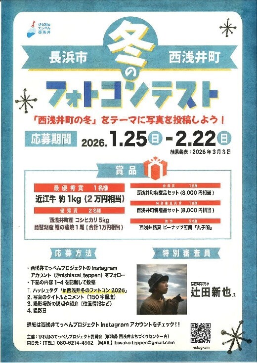 冬のフォトコンテスト」を開催しています。奥琵琶湖の冬景色や里山の暮らし、雪の風景など、西浅井町ならではの一瞬を写真で切り取ってもらい、地域の魅力発信につなげる取り組みです。