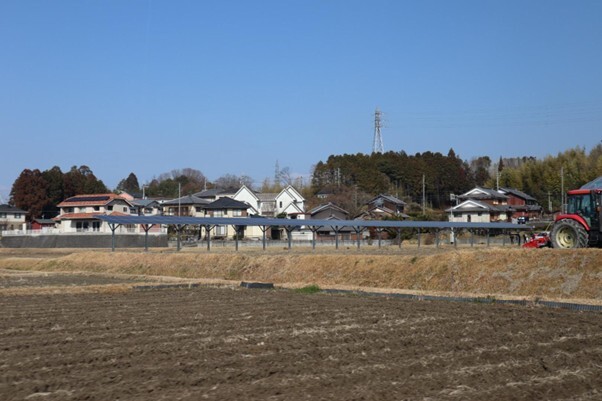 景観の問題は太陽光発電を進める上で大きな争点ですが、視察した発電所は周りにビニールハウスや住宅があるため、個人的な感想としては、周りの景観にも良く馴染んでいました(写真参照)。