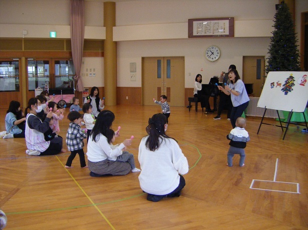 未就園児広場では、自由遊びのほかにも講師の先生、園の先生がリトミック遊びをしてくださったり、季節のあそびを準備してくださったり、また気候の良い時期には、園庭で遊ぶことができる広場もあります。