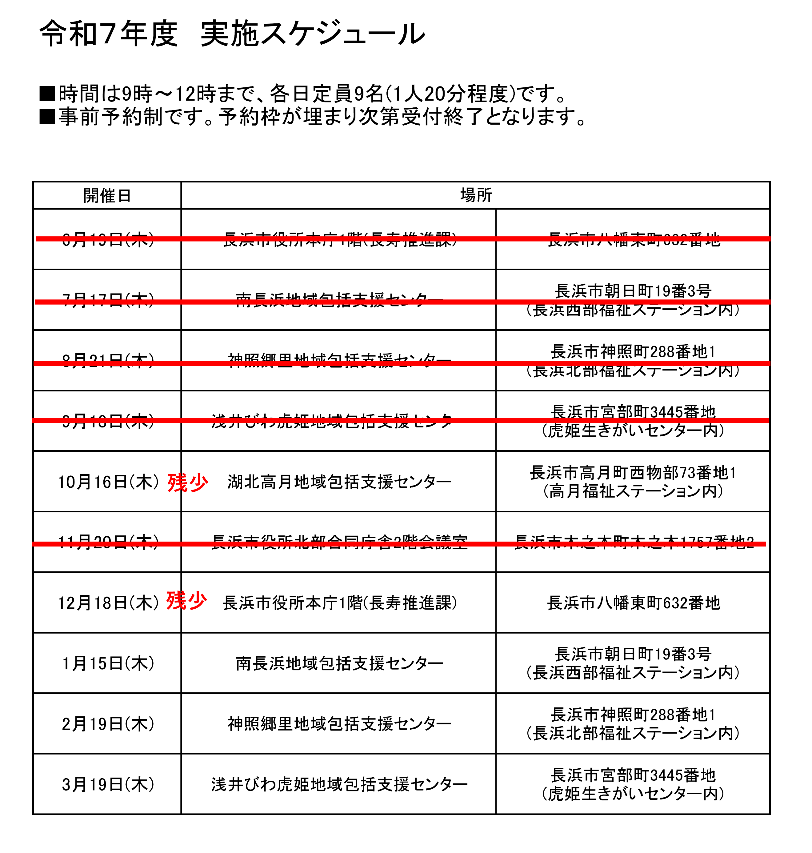 電話予約先:0749-65-7841(長寿推進課直通、平日9時~16時45分)