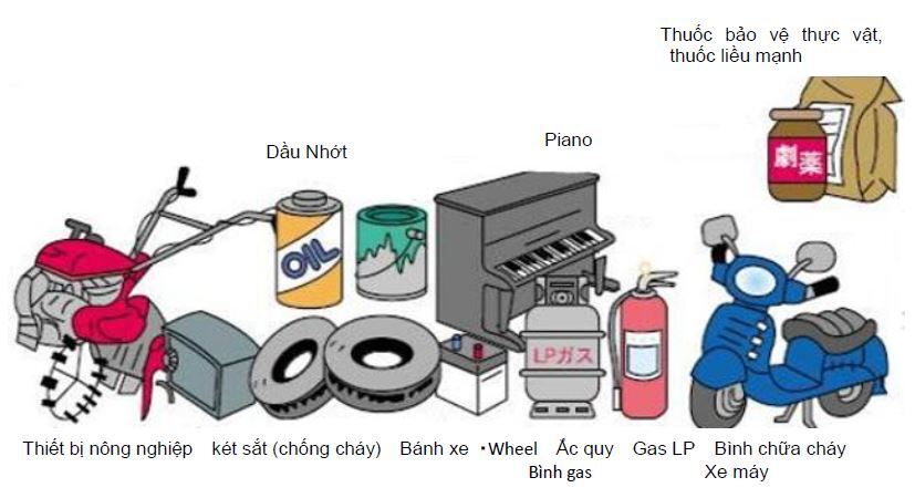 ・Bình chữa cháy ・Đồ vật nguy hiểm ・Thuốc bảo vệ thực vật