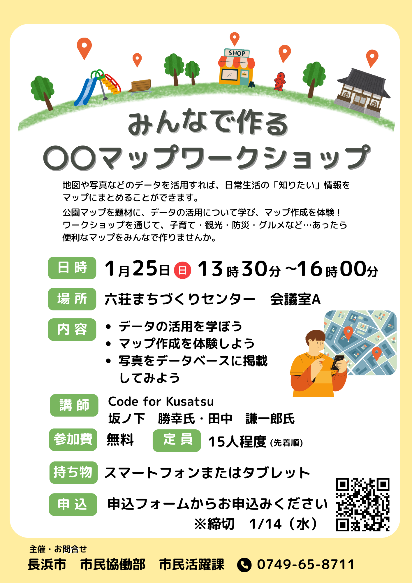ワークショップを通じて、子育て・観光・防災・グルメなど…あったら便利なマップをみんなで作りませんか。