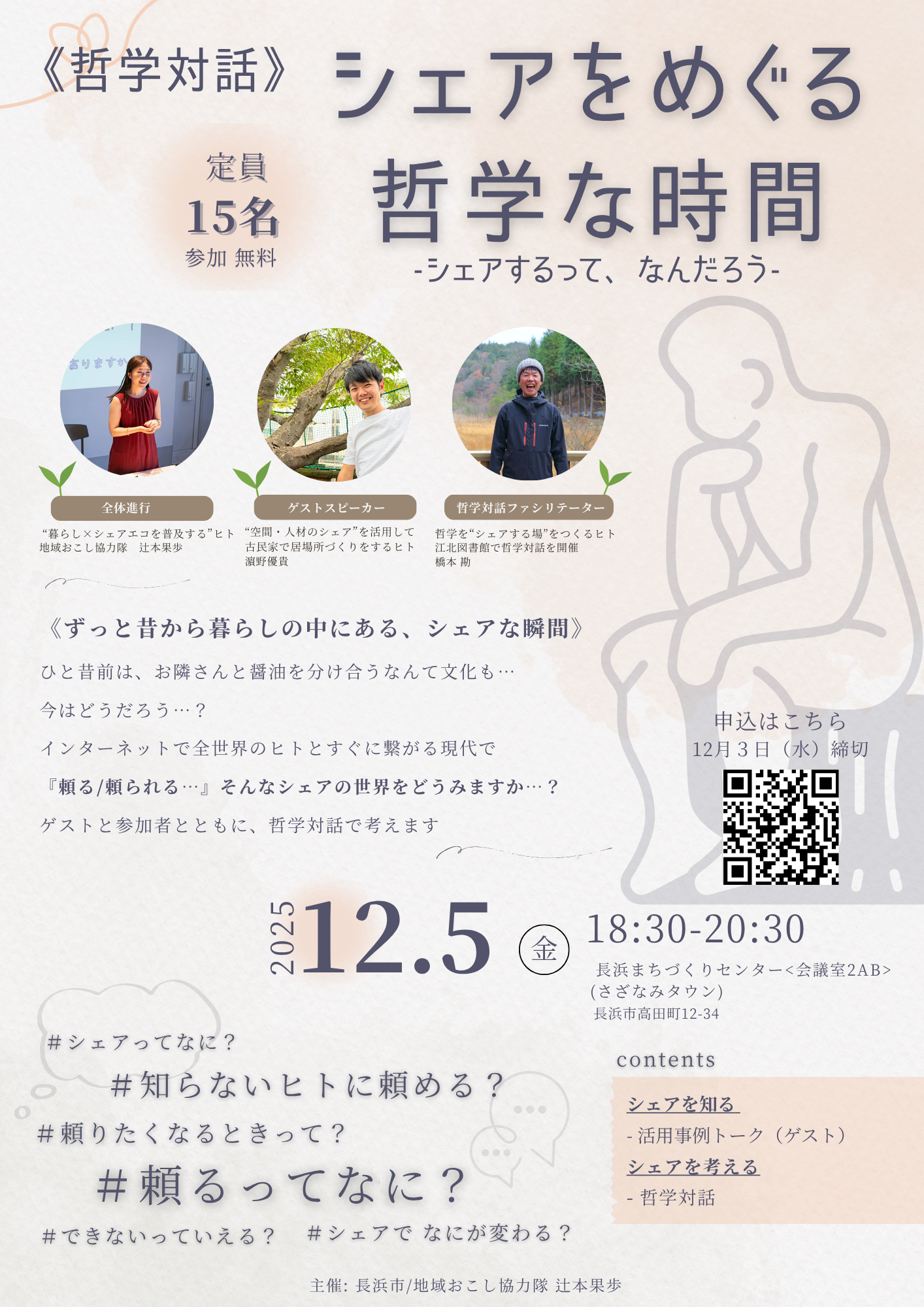 【12月5日】<哲学対話>シェアをめぐる哲学な時間ーシェアするって、なんだろうーの開催について