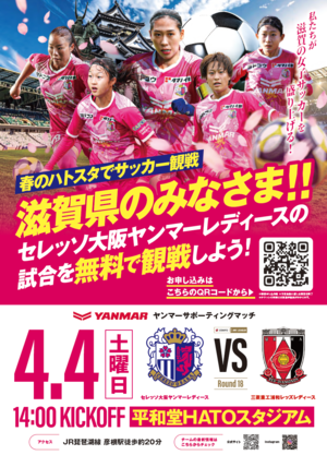 4月4日(土曜日)セレッソ大阪ヤンマーレディース ホームゲーム無料ご招待!