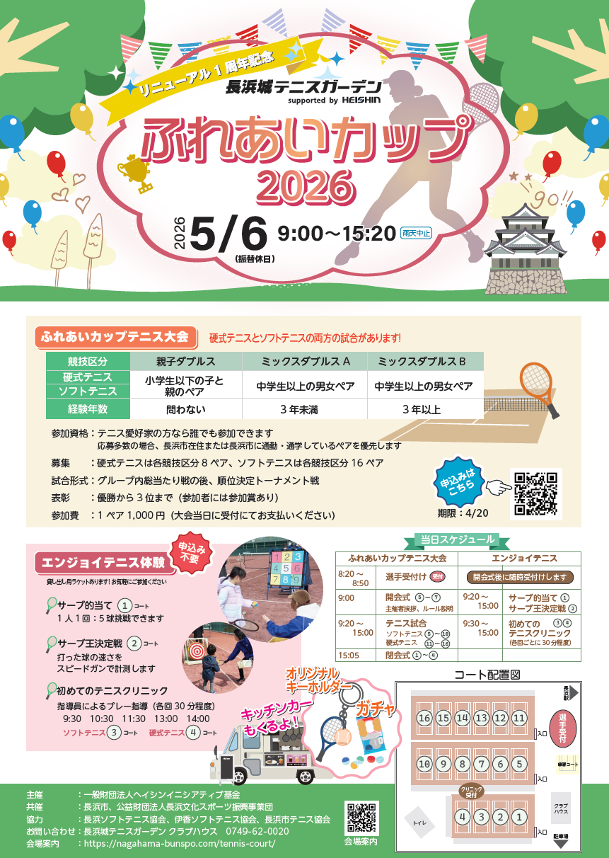 長浜城テニスガーデンリニューアル1周年を記念して、✨ふれあいカップ2026✨を開催します!