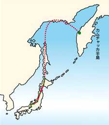 コハクチョウよりも一回り小さく、全体に褐色(かっしょく)がかった地味(じみ)な鳥ですが、くちばしにぎざぎざがあり、先の方がオレンジ色でとてもよく目立ちます。▼ガンの仲間(なかま)で国の天然記念物(てんねんきねんぶつ)に指定されています。ハクチョウたちに比べてずっと警戒心(けいかいしん)が強く、簡単(かんたん)に人を近づけません。 |