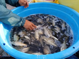 | ↑オオワシがオオクチバスを食べている最中 | ||