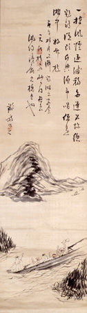 富岡鉄斎筆・江馬天江賛 絖本墨画淡彩 135.0×33.1cm 明治3年(1870)鉄斎35歳